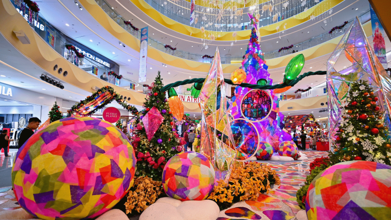 Starting from 22 November to the year-end, come and enjoy the festive atmosphere with colourful stained glass inspired décor spanning from the ground to the tip of the Christmas tree.